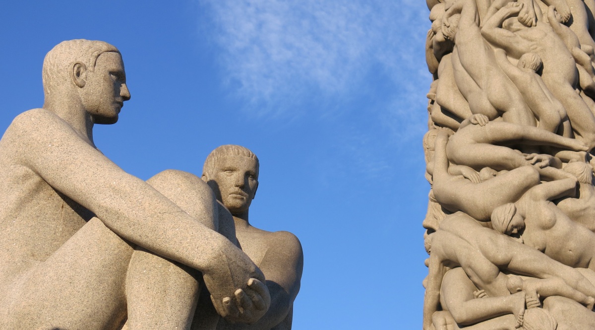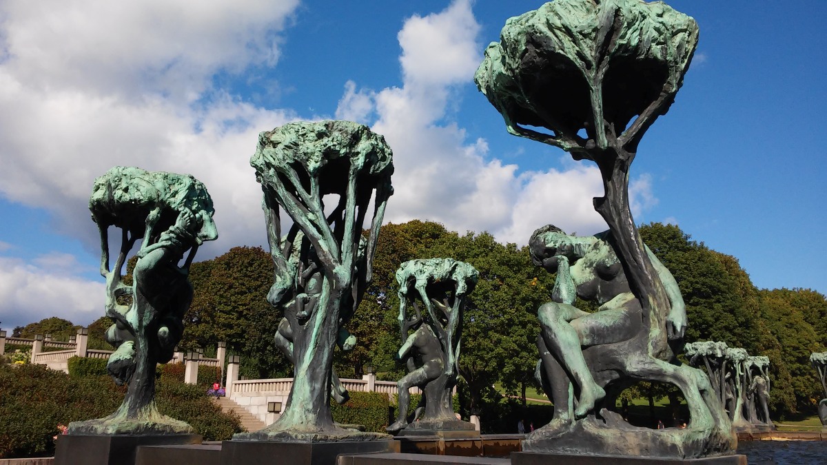 Công viên tượng Vigeland luôn là địa điểm thu hút du khách hàng đầu tại Oslo (Na Uy). Không phải vì trời xanh nước biếc, hoa lá khoe màu, không phải vì qui mô đồ sộ của quần thể tượng mà vì ở đó người ta như thấy thân phận của chính mình… một con người trần trụi trong guồng máy vận hành bất tận của nhân loại.