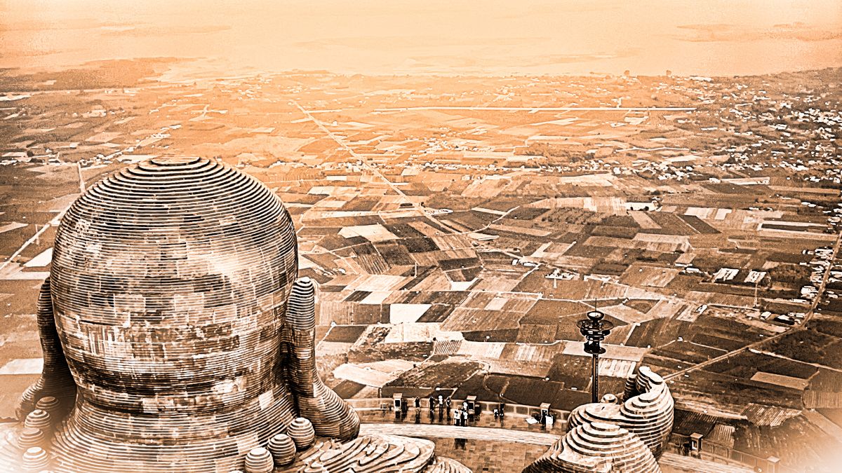 Nhiều người lên đỉnh núi Bà Đen (Tây Ninh) chỉ để ngắm nhìn và chụp hình với tượng Phật Di Lặc khổng lồ (diện tích bề mặt tượng hơn 4,6 ngàn m2). Nhưng dịp nào đó ai lên đây thử đứng phía sau lưng và cùng nhìn một hướng với Phật về phía đồng ruộng và hồ Dầu Tiếng xa xa có khi sẽ thấy được nhiều điều theo nghĩa đen lẫn bóng.