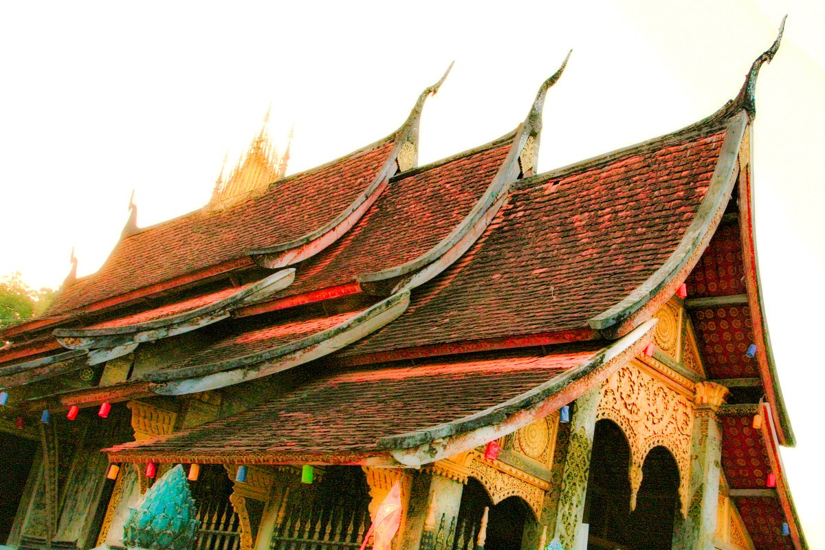 Chùa ở Luang Prabang là những công trình nghệ thuật đáng chiêm ngưỡng. Trên tường, cột, khung cửa… luôn là những phù điêu sơn son thếp vàng rực rỡ, là những hoa văn tinh xảo mềm mại uốn lượn…